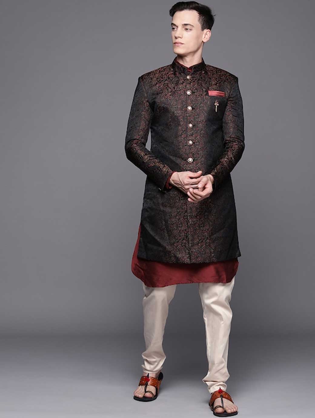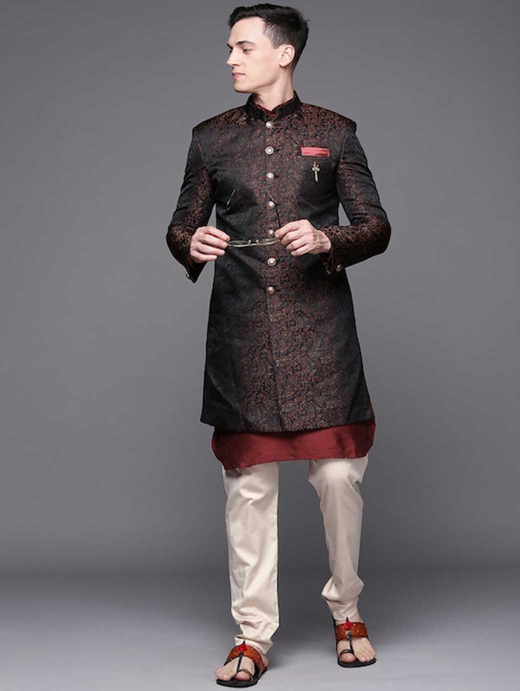 Men Maroon & Brown Ethnic Motifs Sherwani