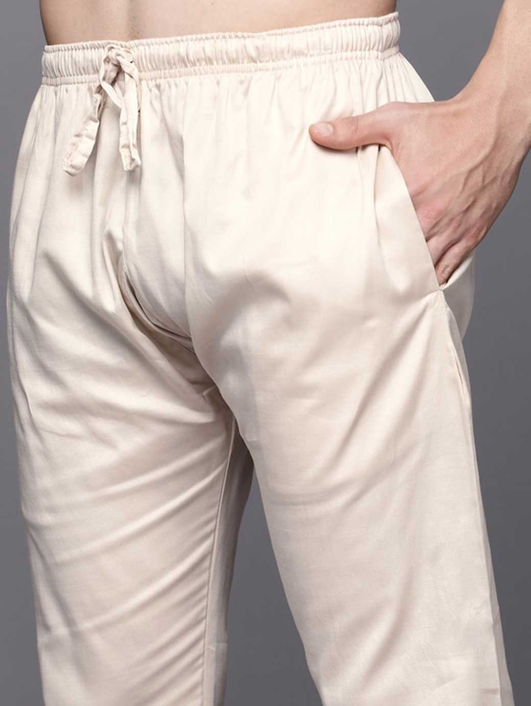 Men Maroon & Brown Ethnic Motifs Sherwani Maroon solid kurta, has a mandarin collar, long sleeves, side slits and 2 pockets Brown ethnic motifs woven design jacket, has a band collar, long sleeves and side slits Cream-coloured solid pyjama, has an elasticated waistband with drawstring closure and 2 pockets
