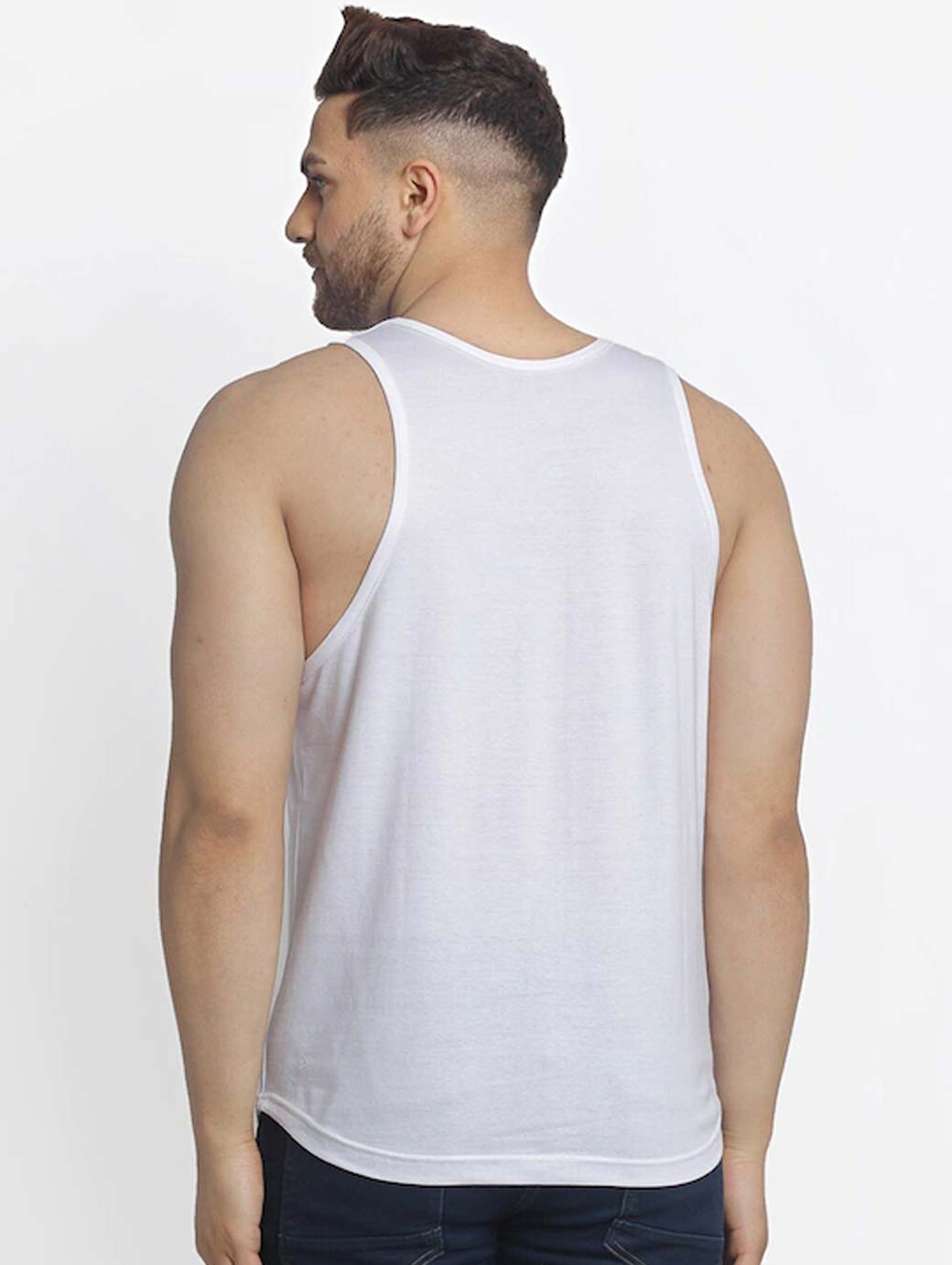 Innerwear gym vests White and black sleepy printed innerwear vest, has a round neck, sleeveless White and grey , has a round neck, sleeveless .
