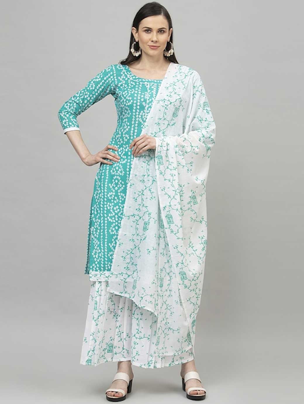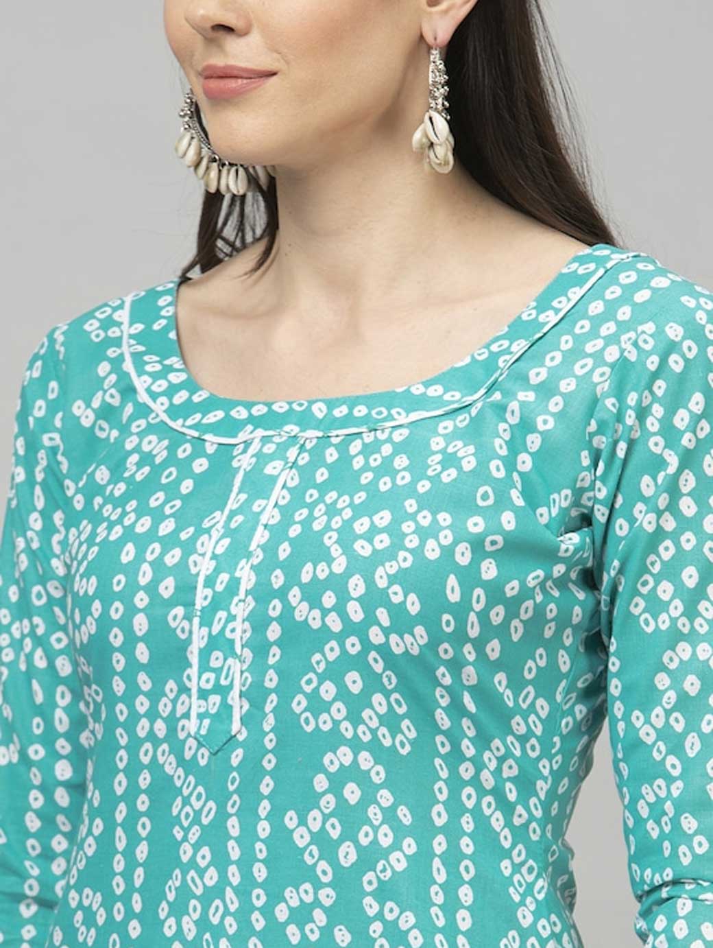 Turquoise Blue and white Ethic Motifs printed bottom fabric