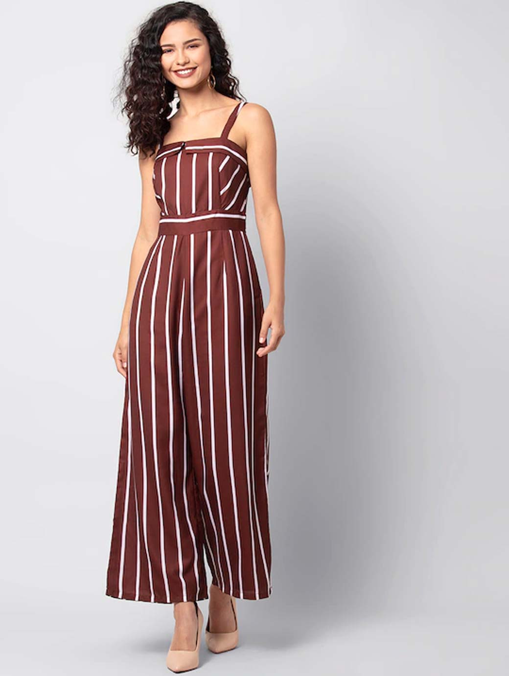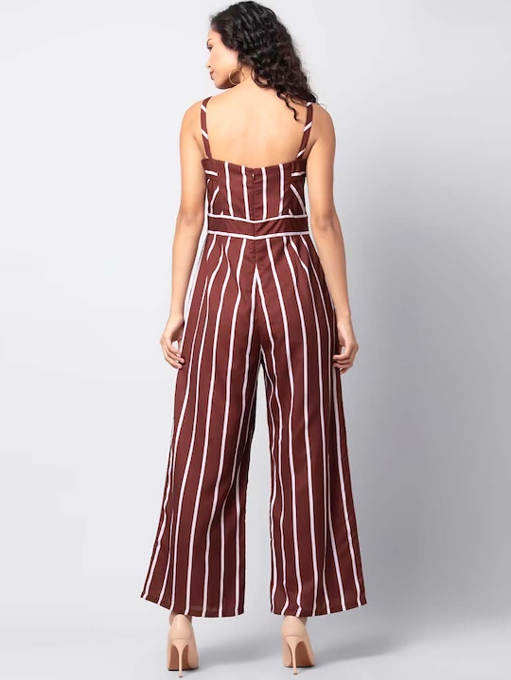Women Maroon & White Striped Basic Jumpsuit