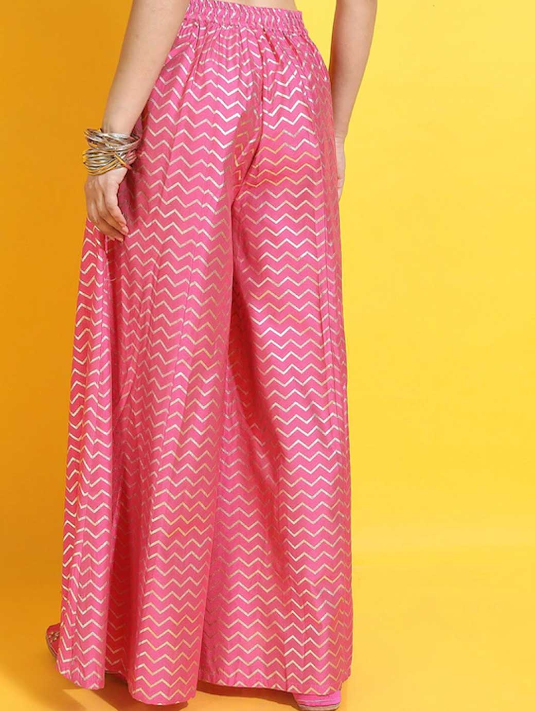 Smart and versatile, these mod palazzos will make for a worthy addition to your casual closet. These palazzos feature a lovely ethnic motifs print and flared fit.