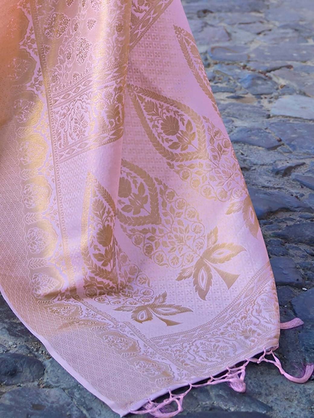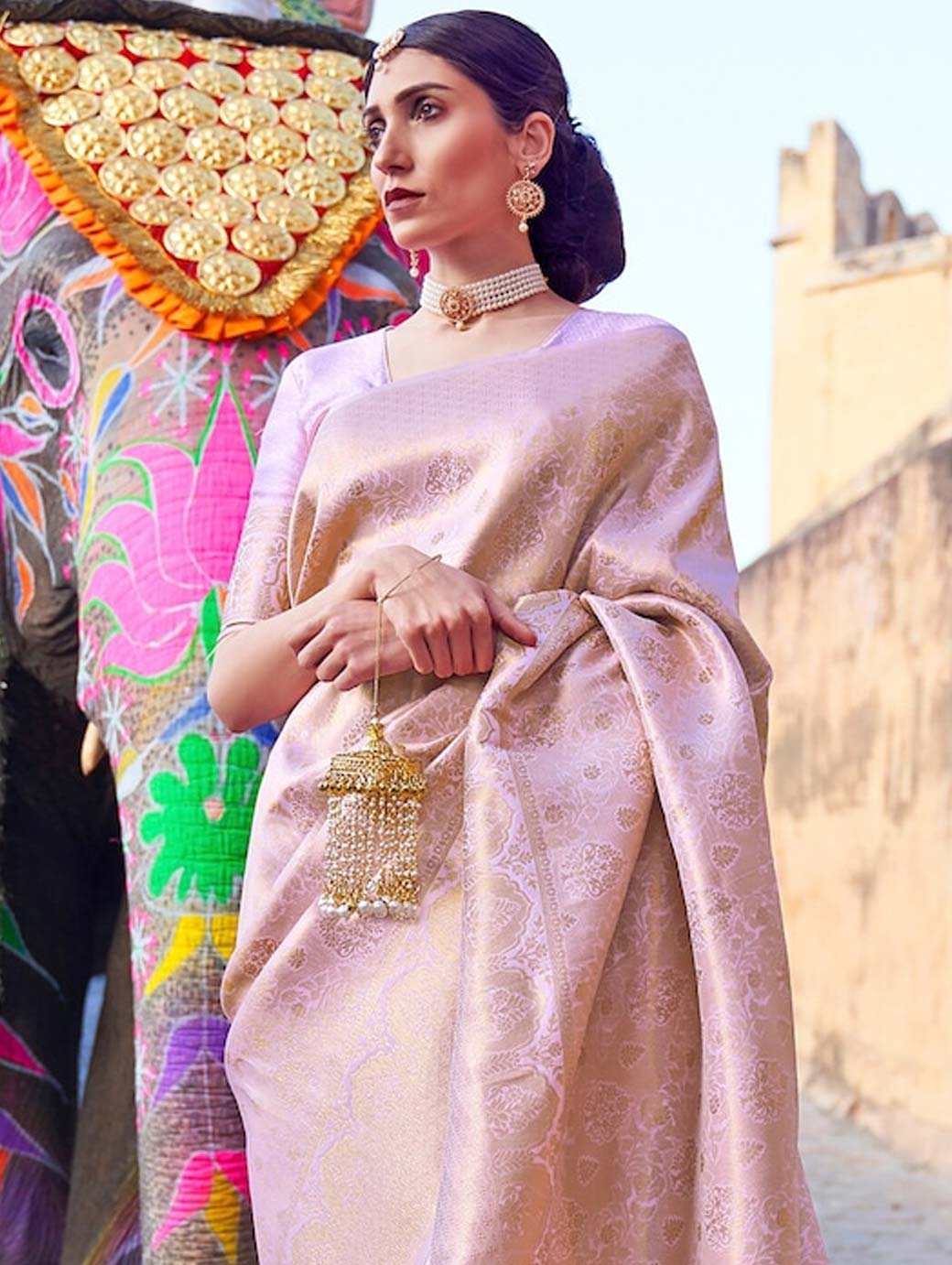 Lavender & Gold-Toned Woven Design Zari Silk Blend Banarasi Saree