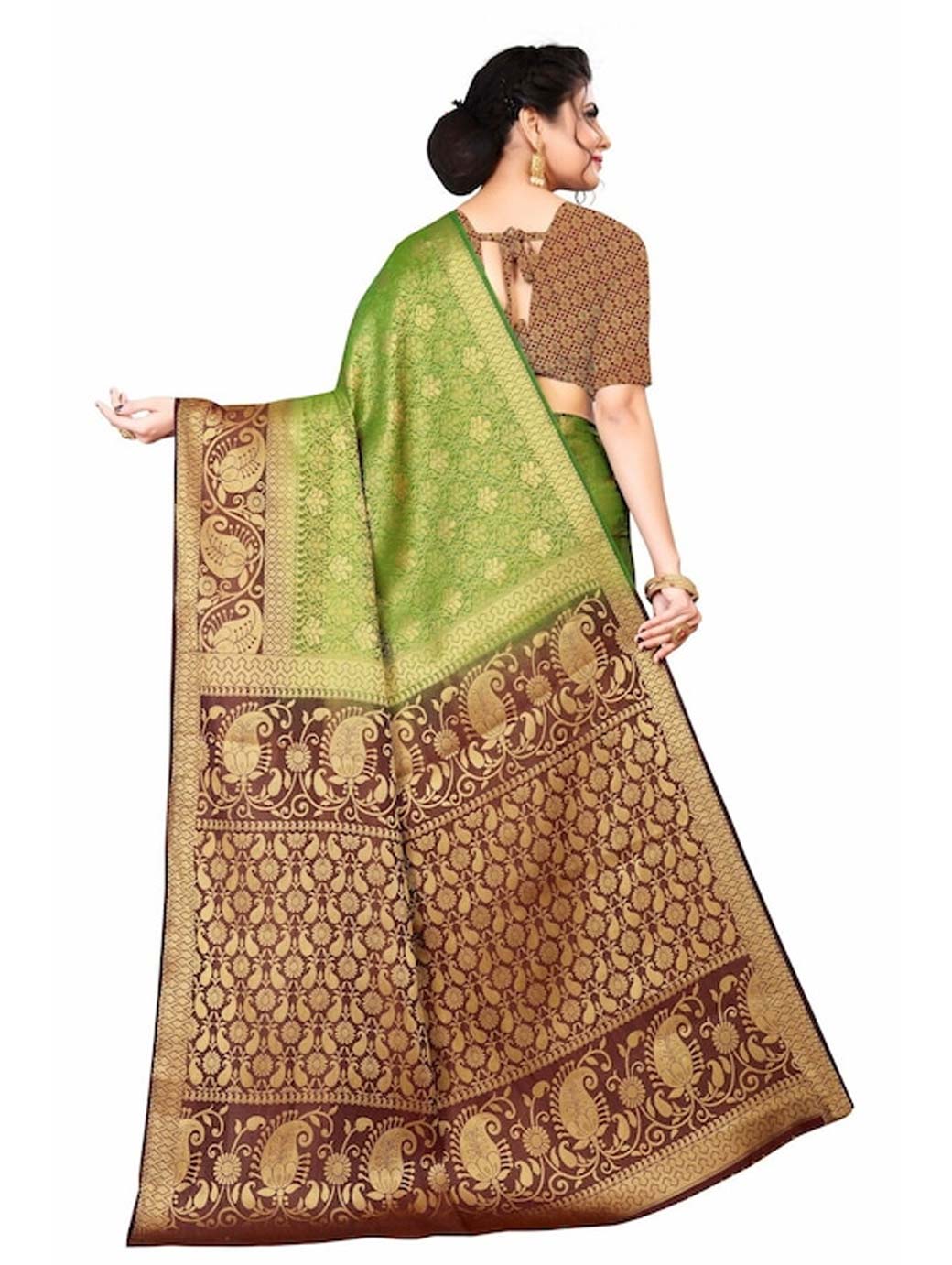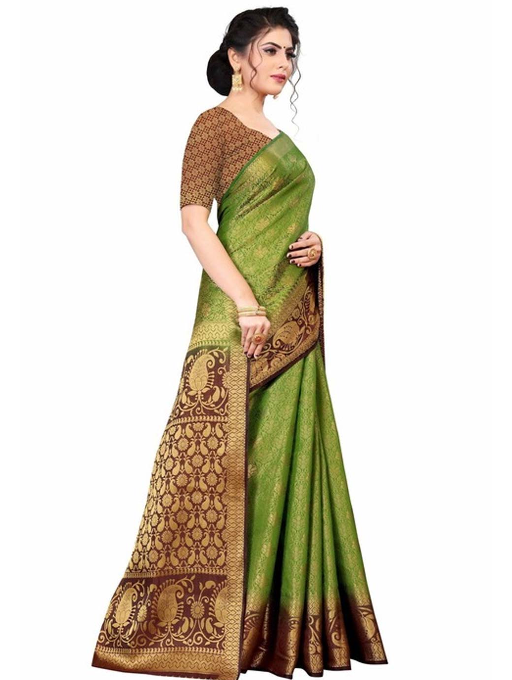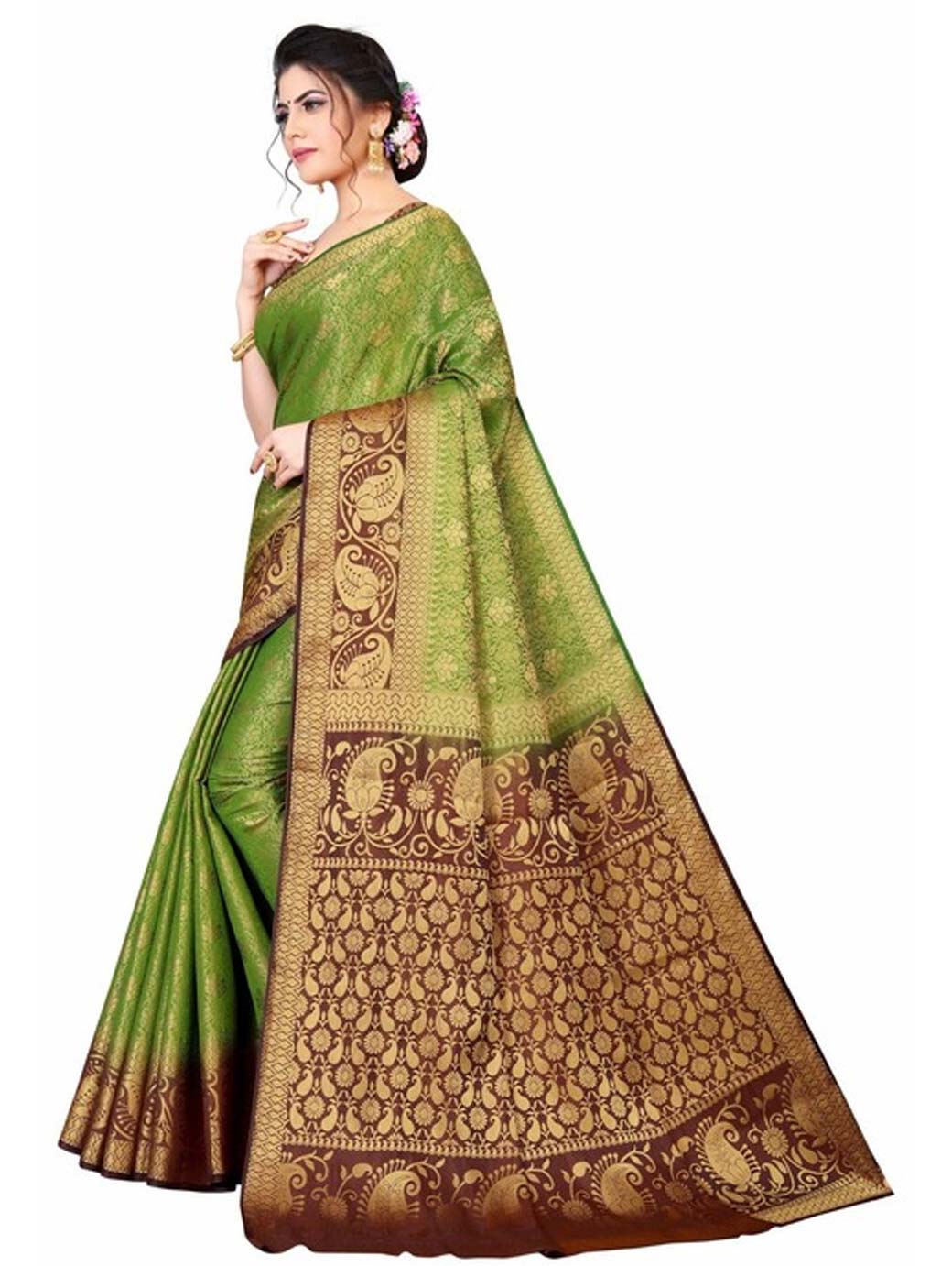 Olive Green & Brown Woven Design Zari Pure Silk Kanjeevaram Saree