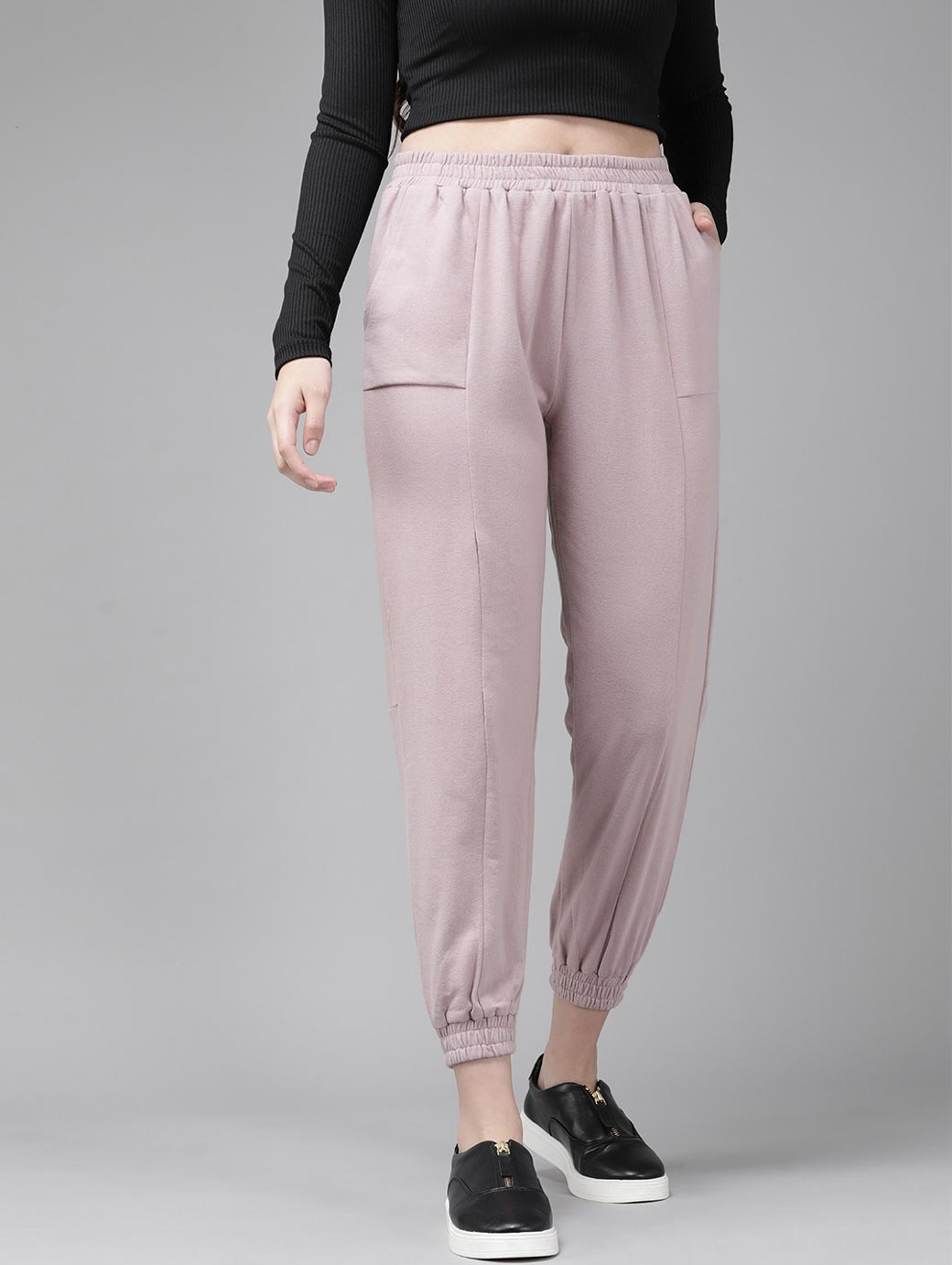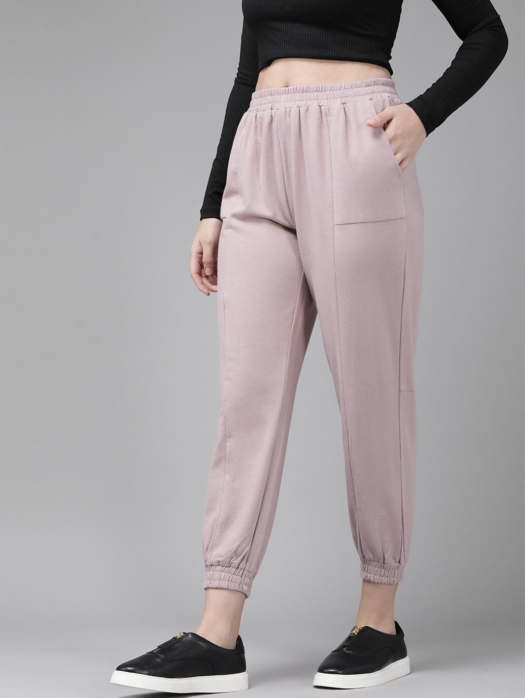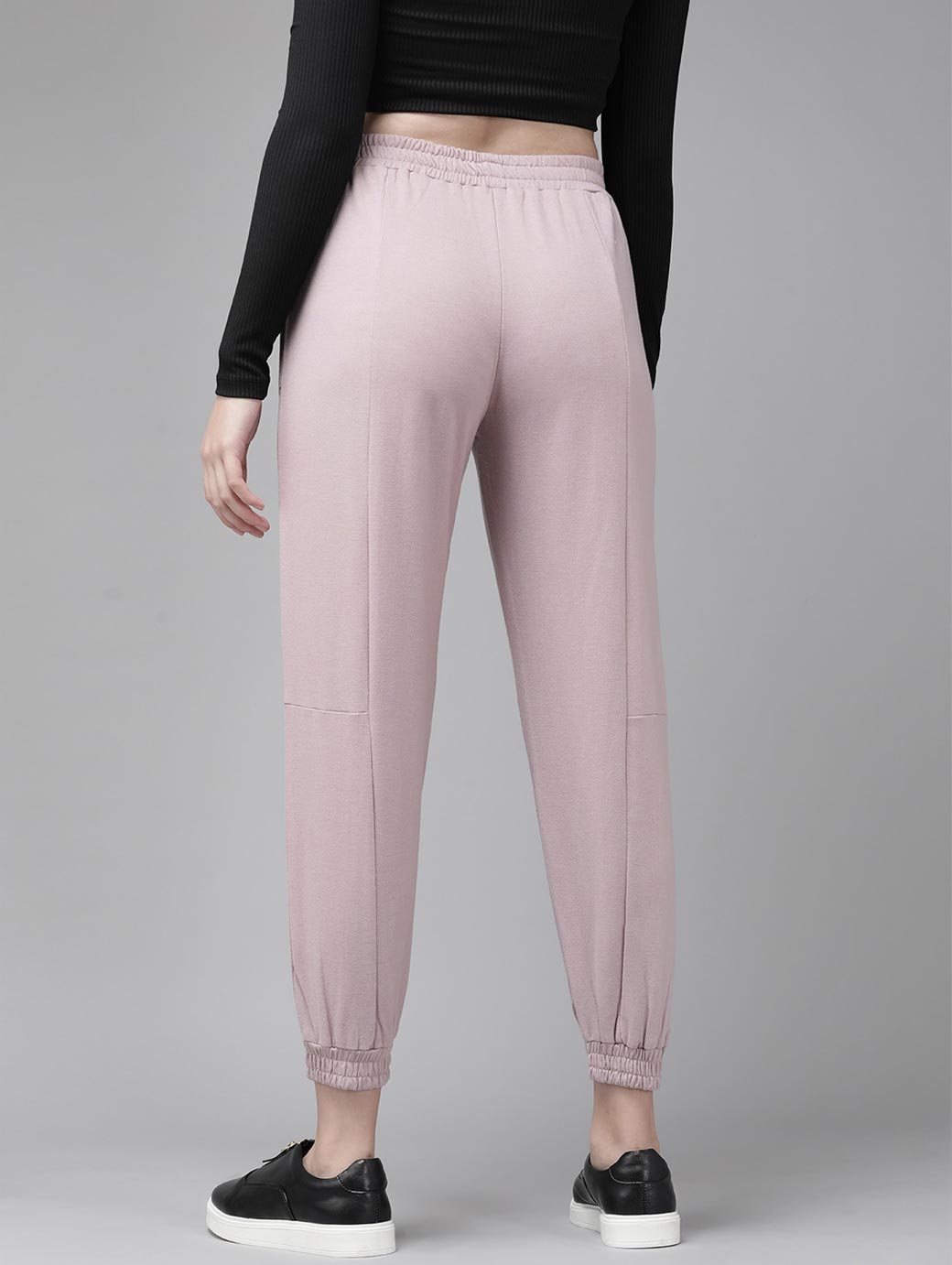 Rose solid cropped joggers, has an elasticated waistband with drawstring closure and two pockets